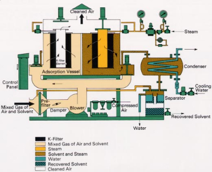 (上图为活性炭纤维ADSR-F吸附回收系统原理图)